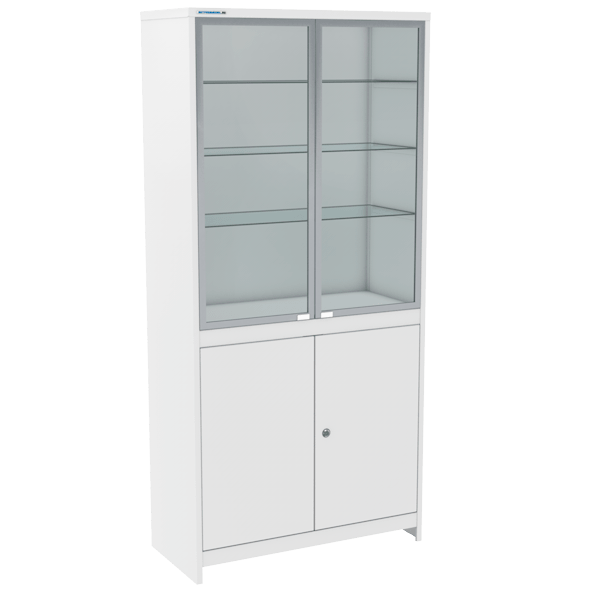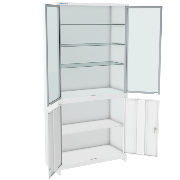 - В нижнем отделении расположены две металлические дверки, запираемые на шпингалет, и замок; одна металлическая полка.