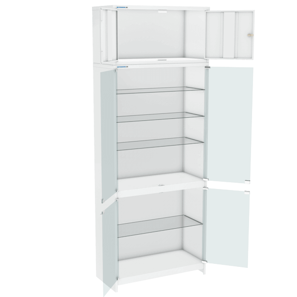 - Подходит для хранения медикаментов, медицинских инструментов и документов в кабинете дежурного врача, в аптеках в качестве демонстрационного, в приемном покое, процедурном кабинете, любом другом помещении больницы.