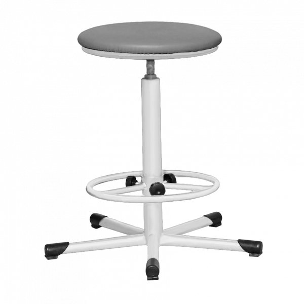 - Табурет на винтовой опоре обивка серая Т02 каркас белый – удобное и функциональное решение для медицинских учреждений, лабораторий, офисов, мастерских и бытового использования.