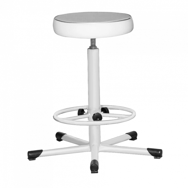 - Табурет на винтовой опоре Т02-1, обивка белая, каркас белый – эргономичная и надежная модель для медицинских учреждений, лабораторий, косметологических салонов и офисных пространств.