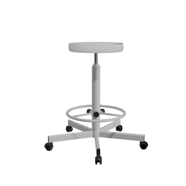 - Табурет оснащен колесами, что позволяет легко передвигать его по поверхности, не повреждая полы.