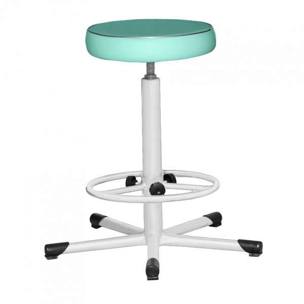 - Табурет на винтовой опоре Т02-1, обивка зеленая, каркас белый – универсальная и эргономичная модель, идеально подходящая для медицинских учреждений, косметологических кабинетов, лабораторий и офисов.