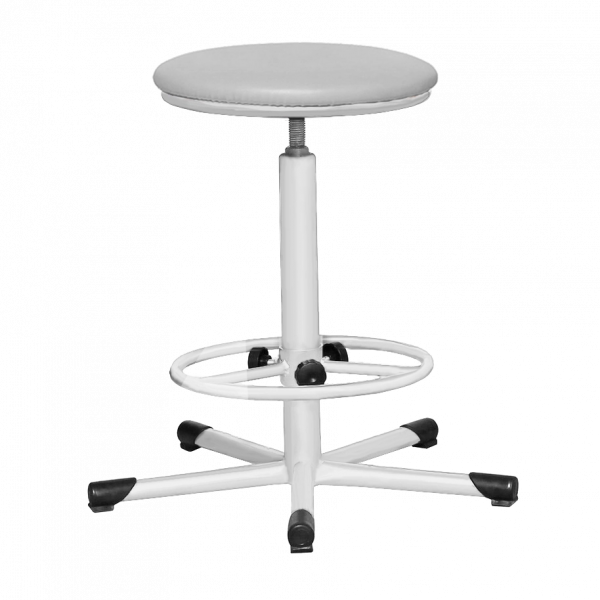 - Табурет на винтовой опоре Т02, обивка светло-серая, каркас белый – практичный и стильный элемент мебели, который идеально подходит для использования в медицинских, офисных и домашних интерьерах.