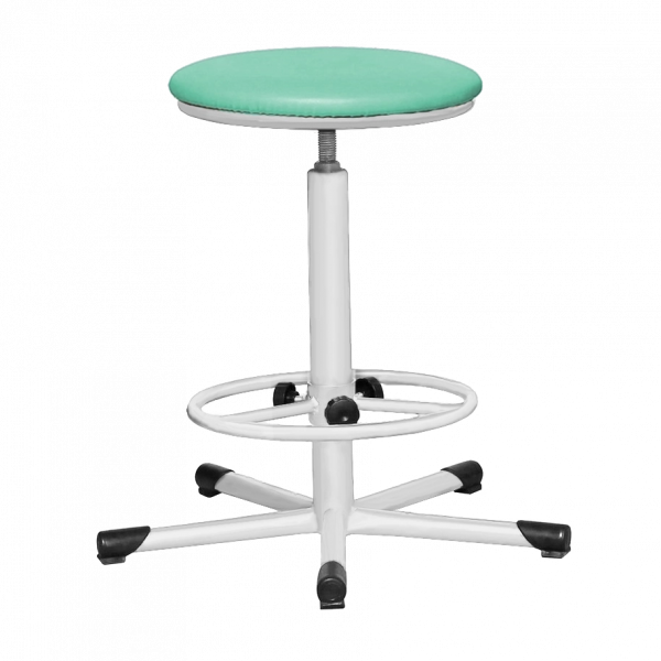 - Табурет на винтовой опоре Т02, обивка зеленая, каркас белый – удобное и надежное решение для медицинских кабинетов, лабораторий, офисов и домашнего использования.