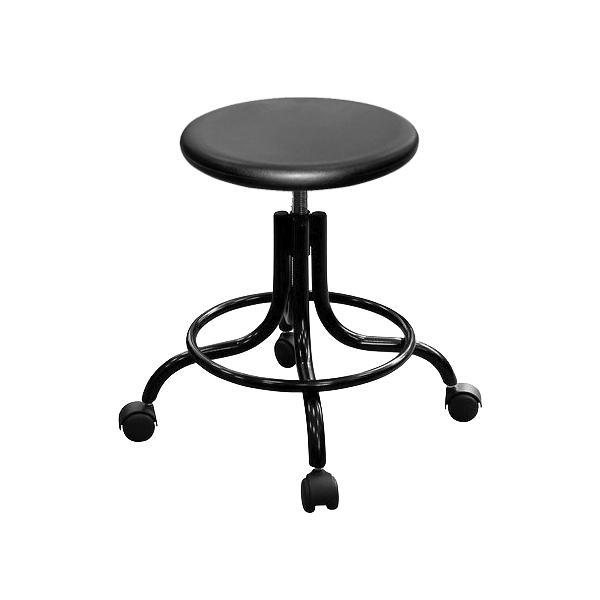 - Табурет винтовой полиуретан Т08, форма основания круглое сиденье, каркас черный – надежное и эргономичное решение для производственных помещений, медицинских кабинетов, лабораторий и мастерских.