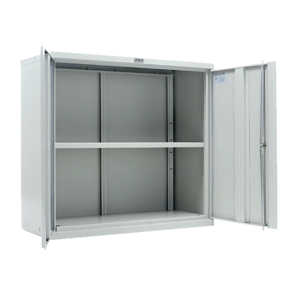 - Офисный шкаф M-08 укомплектован прочными ключевыми замками, гарантирующими безопасность хранения.