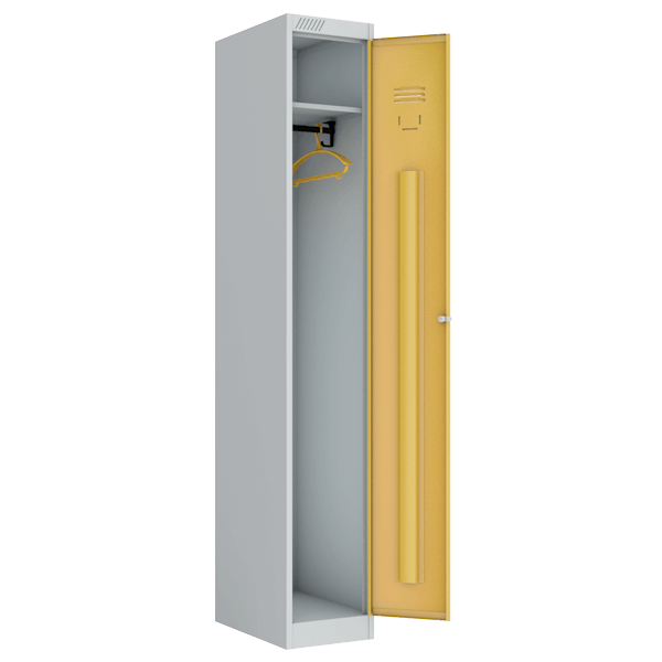 - Одностворчатый шкаф используется для хранения сменной одежды в раздевалках.