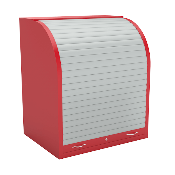 - Цвет корпуса шкафа – красный, роллета выполнена в светло-сером цвете.