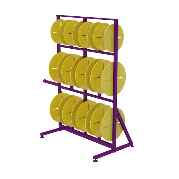 - Два нижних яруса составлены из технологических барабанов для установки бухт наружным диаметром до 500 мм.
