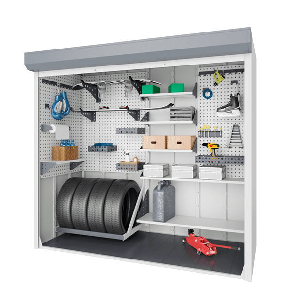 - Конструкция состоит из набора панелей и комплекта рольставней.