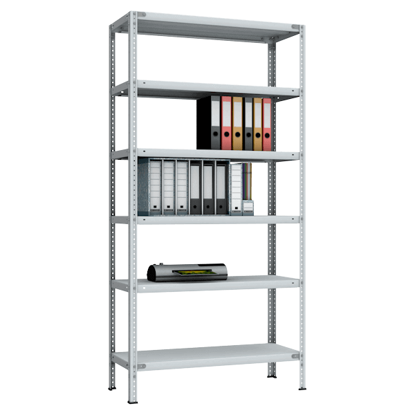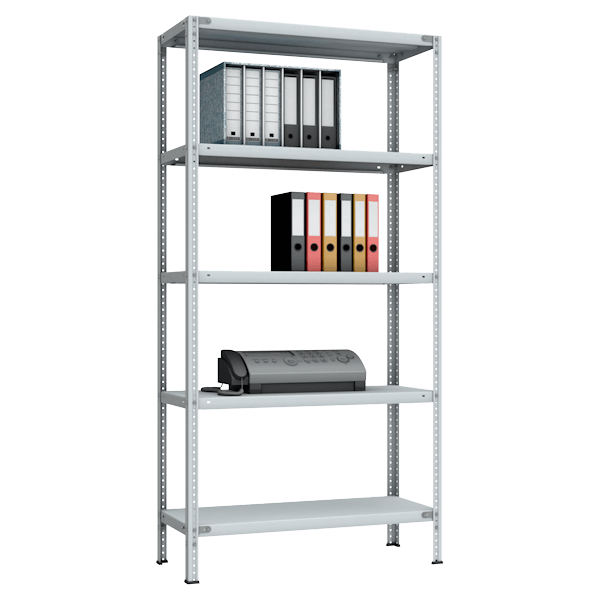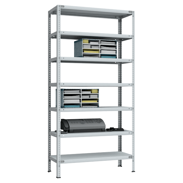 - Сборно-разборный, состоит из стоек фигурного профиля, полок в необходимом количестве, фурнитуры и крепежа.