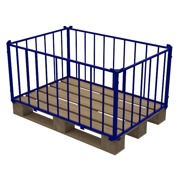 - Борта соединяются болтами; имеют металлические захваты снизу для крепления и площадки сверху для установки палеты.