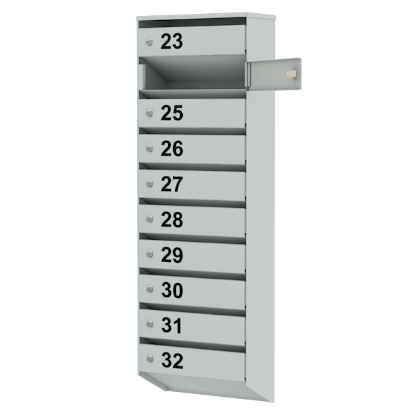 - Каждая дверца оснащена замком, два ключа входят в комплект к каждой ячейке.