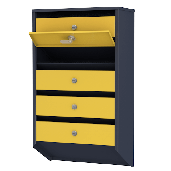 - Каждая дверца оснащена индивидуальным почтовым замочком.