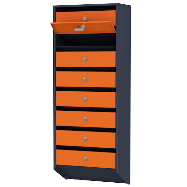 - Корпус и дверцы ящика могут быть окрашены в любые цвета каталога RAL.
