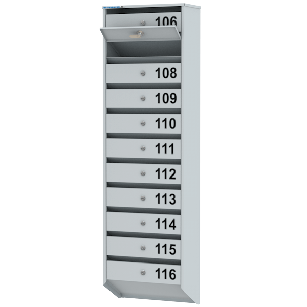 - Каждая дверца оснащена ключевым замком, два ключа входят в комплект к каждой ячейке.