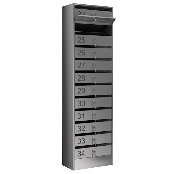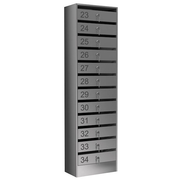 - Каждая ячейка запирается на индивидуальный замок и комплектуется 2 ключами.