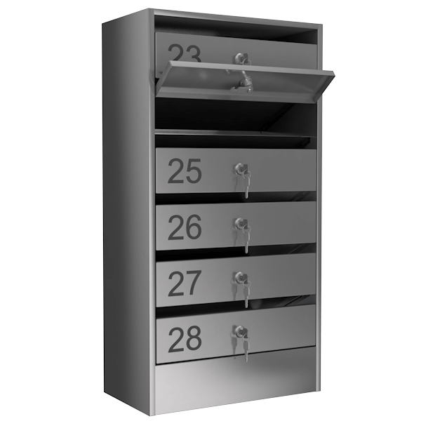 - Каждая ячейка запирается на индивидуальный замок и комплектуется 2 ключами.