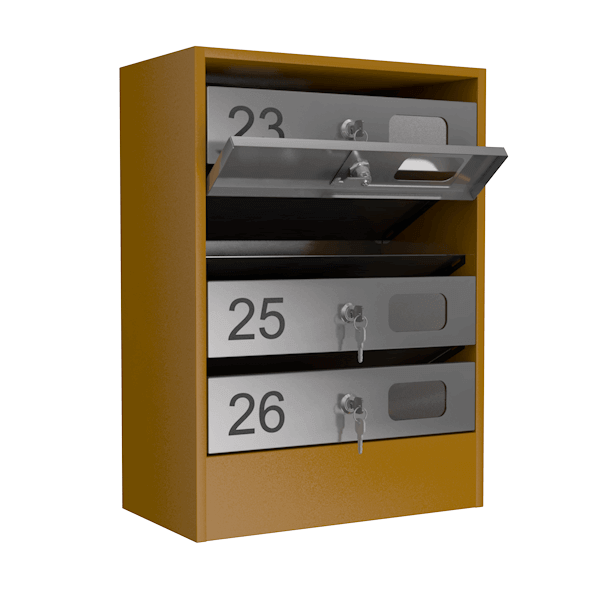 - Почтовый ящик с дверцами из нержавеющей стали.