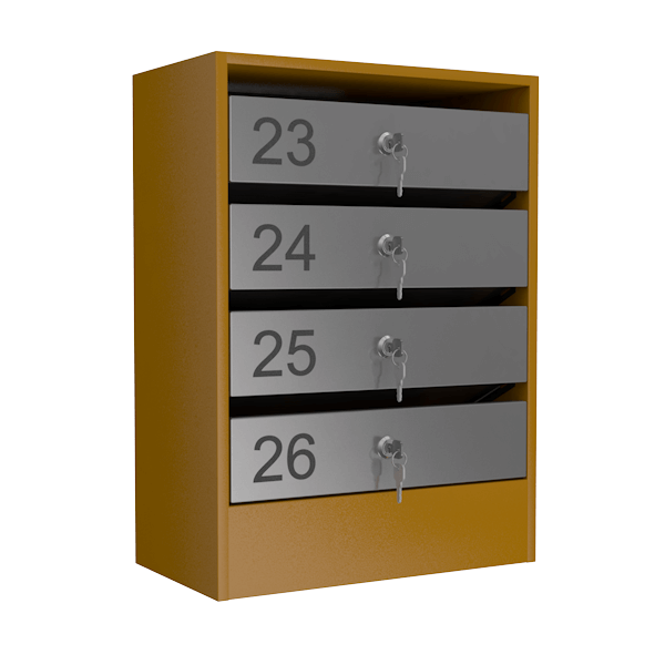 - Ящик почтовый из 4 ячеек для хранения корреспонденции, рассчитан на 4 квартиры.