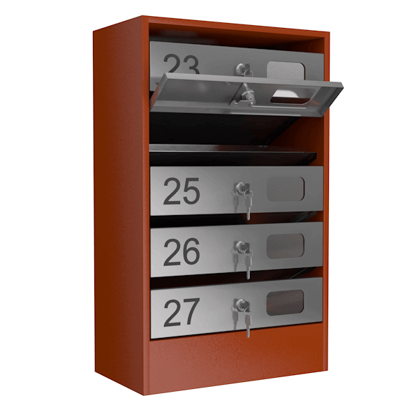 - Почтовый ящик с дверцами из нержавеющей стали.