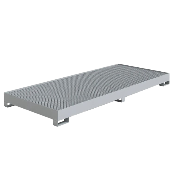 - Представляет собой сварную конструкцию со съемной решеткой и металлической ванной куда стекает излишняя жидкость, хранимая в бочках.