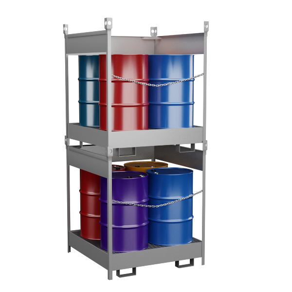 - Предназначен для хранения и транспортировки двух бочек с техническими жидкостей, а также сбора таких жидкостей в специальный контейнер при их случайном пролитии.