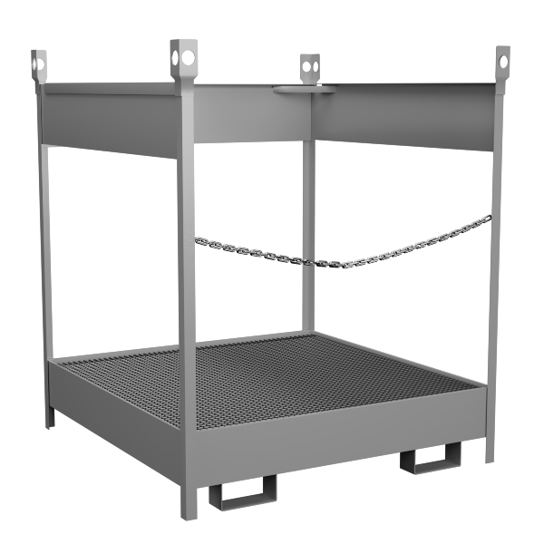 - Конструкция имеет направляющие и проушины для захвата вилочным погрузчиком и для штабелирования.