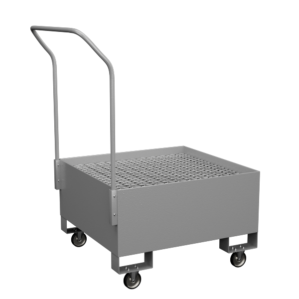 - Комплектуется ручкой и 4 колёсами (2 поворотных, 2 неповоротных) диаметром 150 мм.