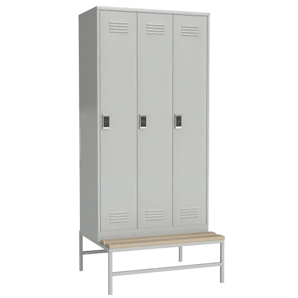 Металлический шкаф для одежды на подставке с деревянной скамьей и электронным замком