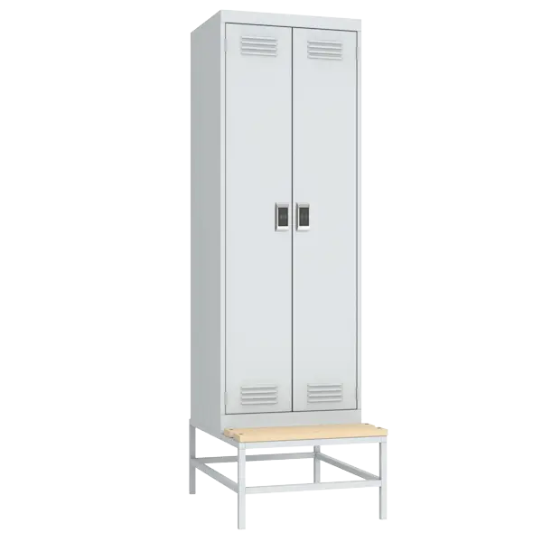 - Предназначен для хранения сменной, рабочей или верхней одежды, комплектуется скамейкой.