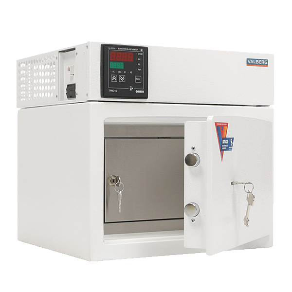 - Устойчивость к взлому обеспечивается при помощи многослойной защиты стенок и двери, усиленной ригельной системы запирания, защиты от высверливания и выбивания замка и ригелей.