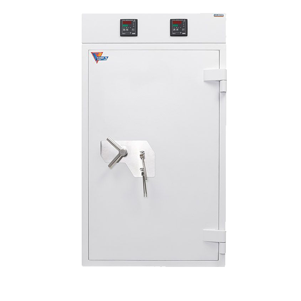 - Устойчивость к взлому обеспечивается за счёт многослойной защиты стенок и двери, усиленной ригельной системы запирания, защиты от высверливания и выбивания замка и ригелей.