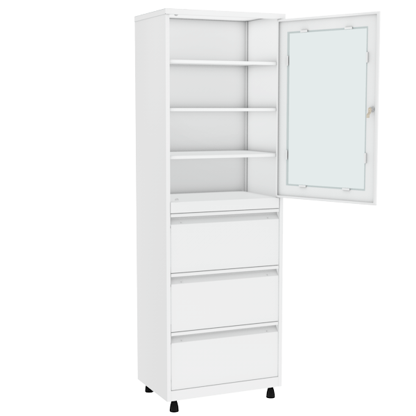 - Устанавливается в медицинские учреждения для хранения медикаментов, инструментов, документации, личных вещей.
