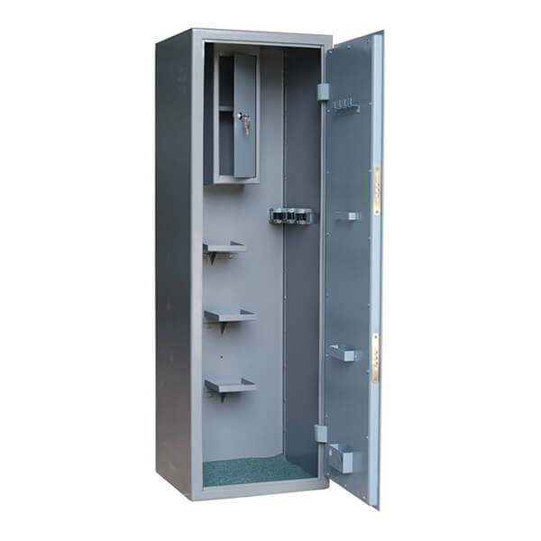 - Оснащен запираемым на ключ патронным отделением и съёмными полками.