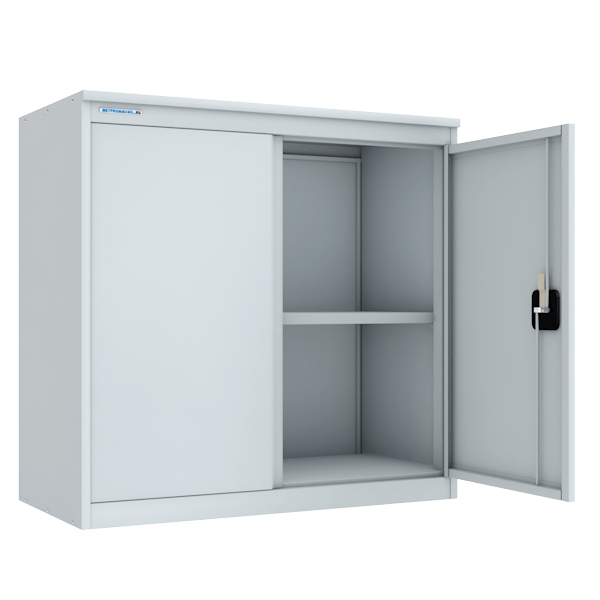 - Одна секция, 2 двери с архивным ригельным замком с ручкой, 1 полка (регулируется по высоте).