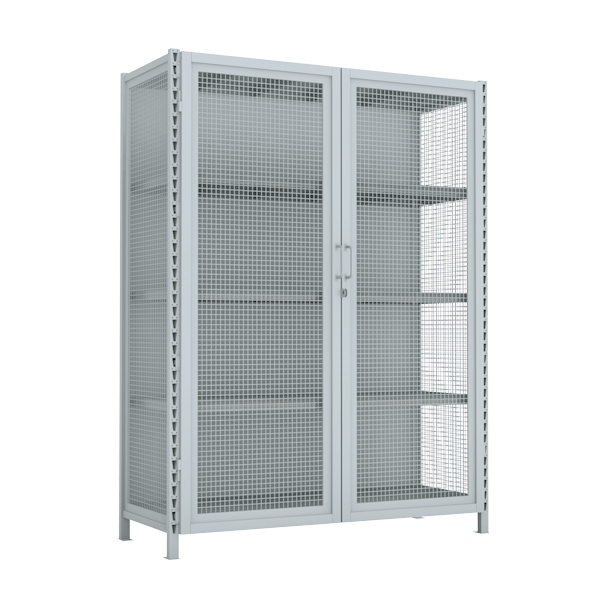 - Оснащен дверями и боковыми стенками сетчатого типа; задняя стенка выполнена сплошной для дополнительной жесткости.
