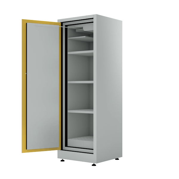 - Снаружи шкаф покрыт эпоксидной кислотостойкой краской жёлтого и серого цветов.