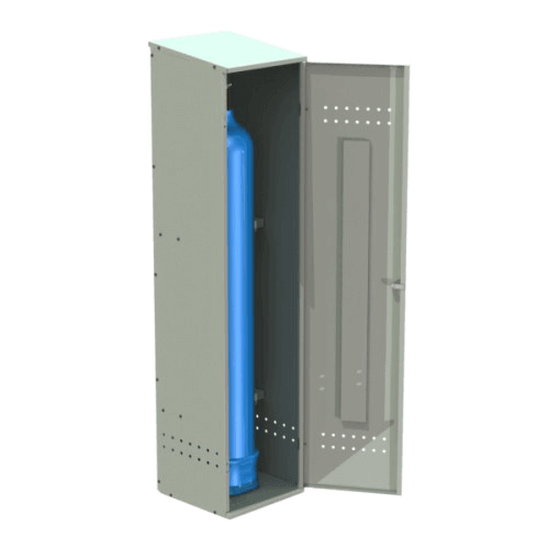 - Корпус сборный, выполнен из стального листа толщиной 0,8 мм; отделение для одного баллона.