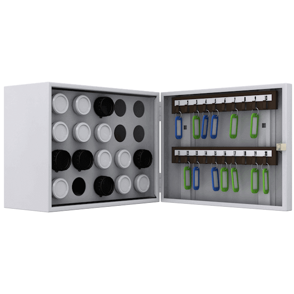- Шкаф для ключей КЛ-20П предназначен для хранения 20 комплектов ключей и 20 пеналов (тубусов).