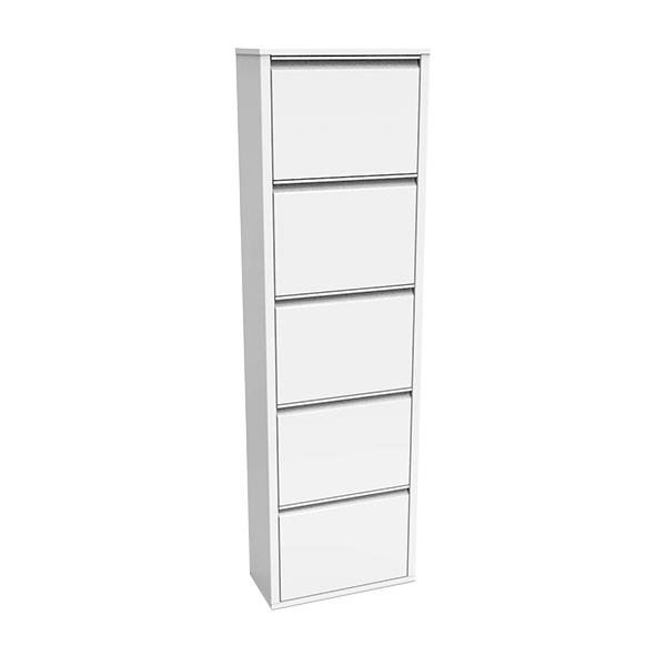- Металлический шкаф для хранения обуви оборудован откидными полками (5 штук).