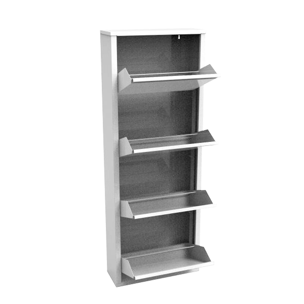- Металлический шкаф для хранения обуви оборудован откидными полками (4 штуки).