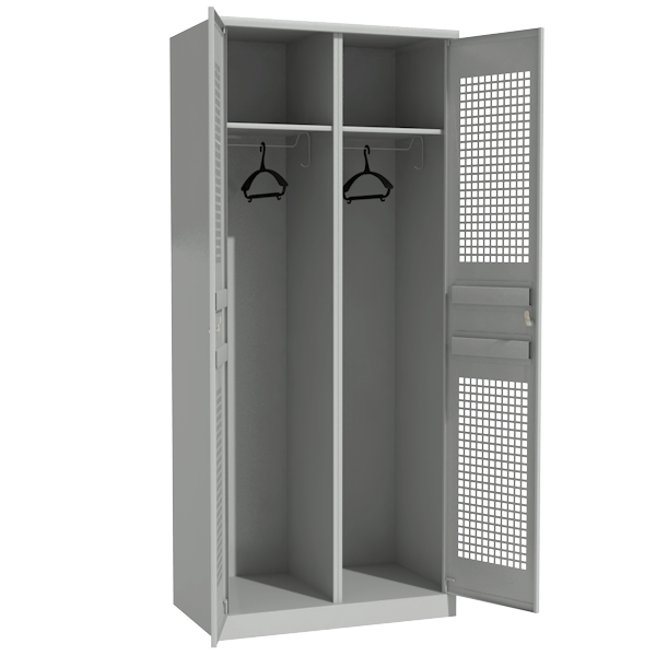 - Состоит из двух отделений, каждое отделение комплектуется полочкой для головного убора, перекладиной для вешалок и крючками для одежды.