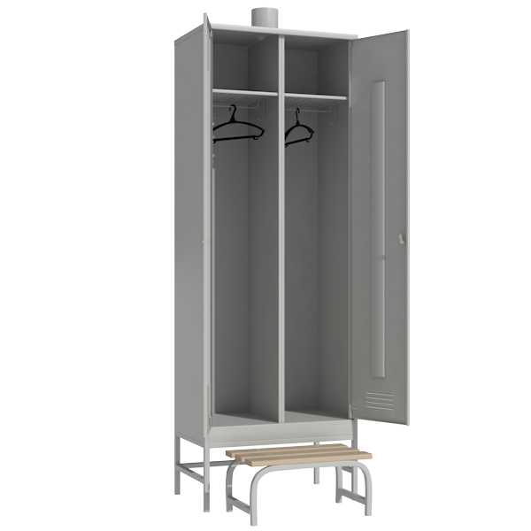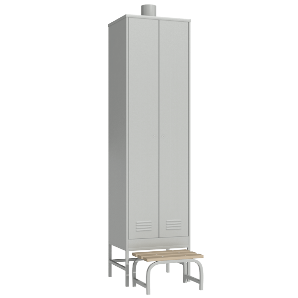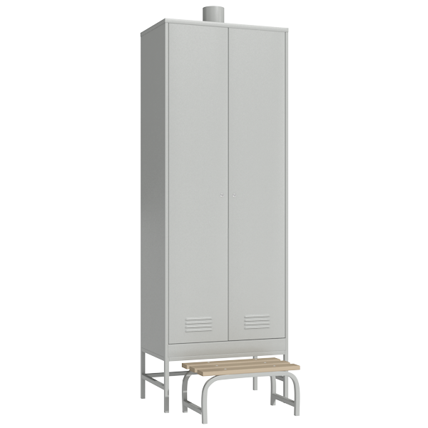 Шкаф для одежды рабочего с принудительной вентиляцией с выдвижной скамьей