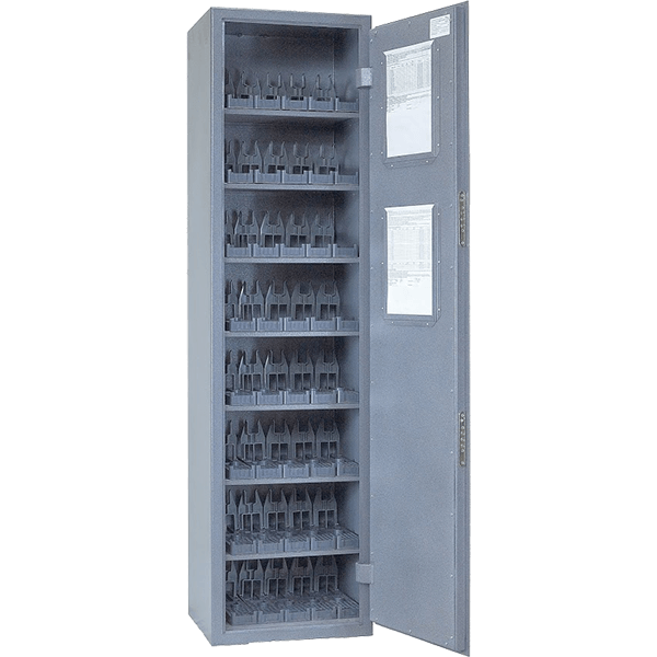 - Шкаф рассчитан на 40 стволов, оснащен съемными полками.