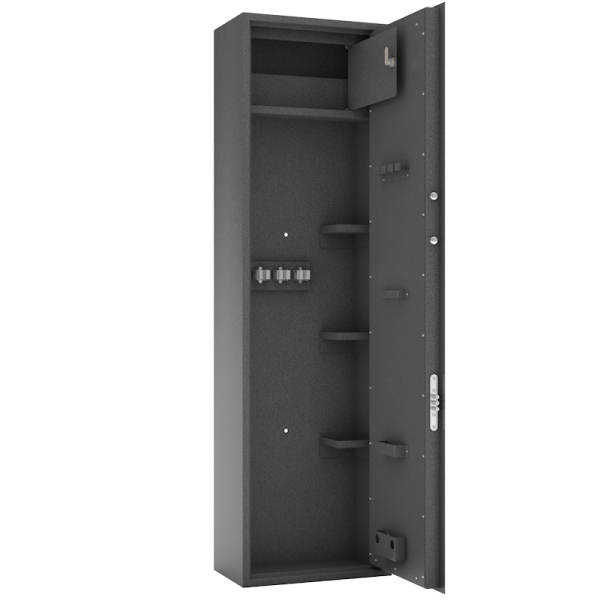 - Оснащен тремя съемными полками и запираемым отделением под патроны.