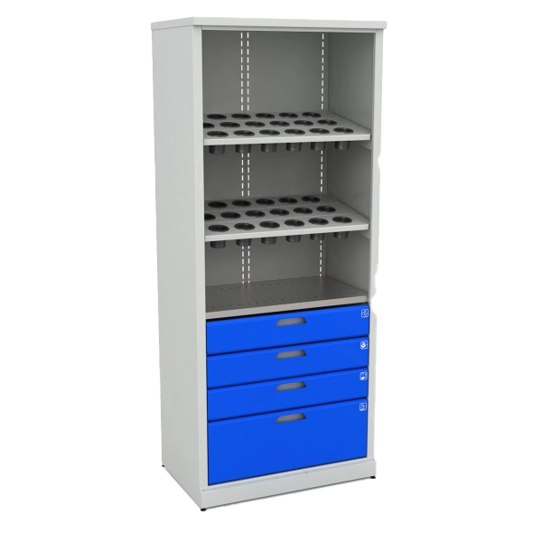 - Шкаф предназначен для безопасного и организованного хранения инструментов, используемых с ЧПУ станками.