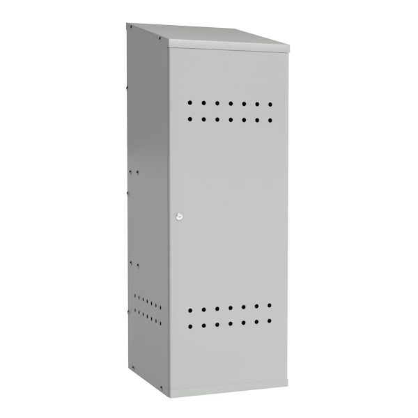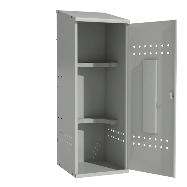 - Металлический сборный корпус с одной дверцей, оснащенной проушинами под навесной замок.