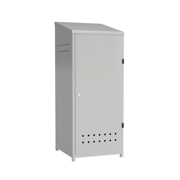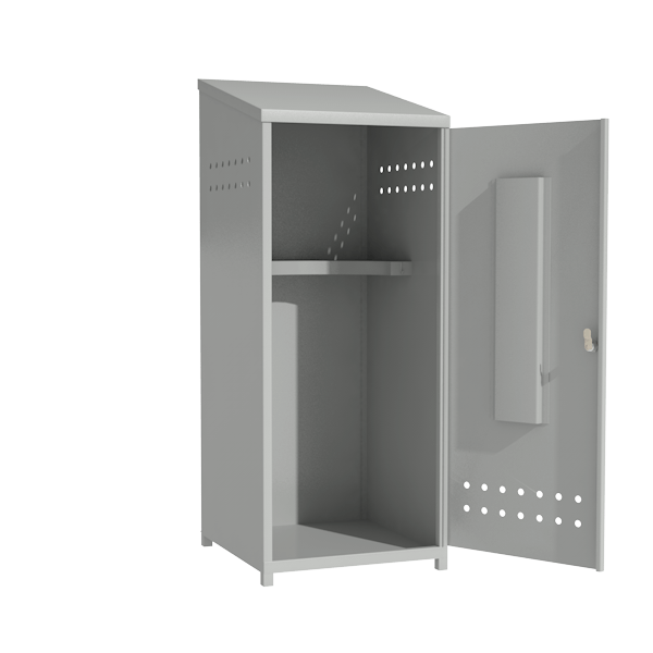 - Металлический корпус на ножках; дверца оснащена ключевым замком.