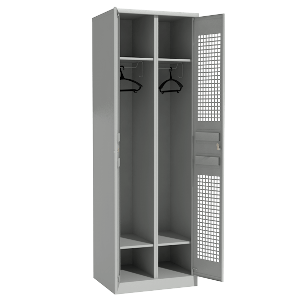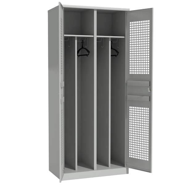 - Предназначен для хранения верхней и сменной одежды на предприятиях, где есть необходимость переодевания персонала или посетителей.